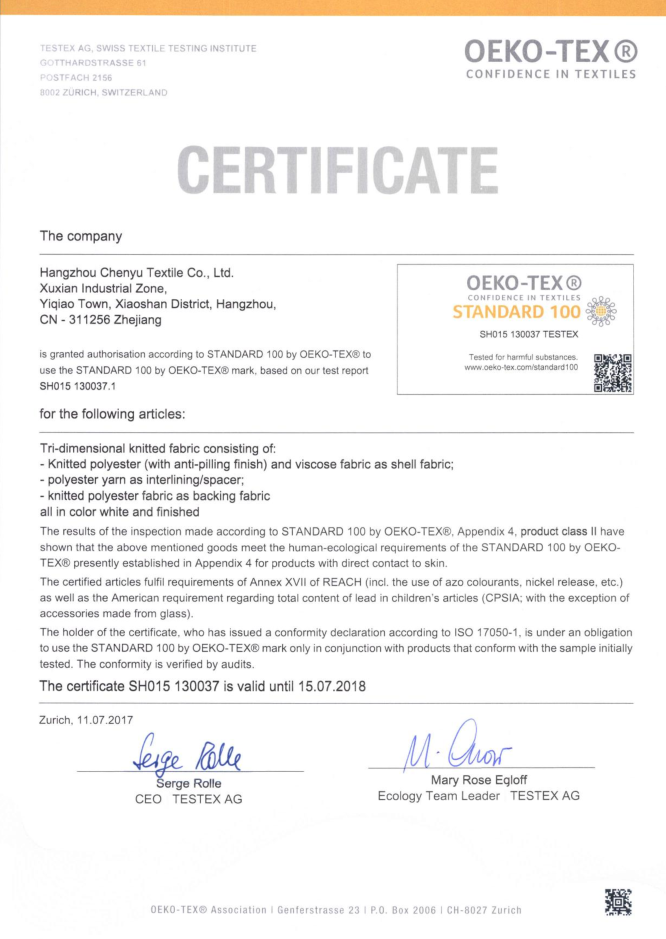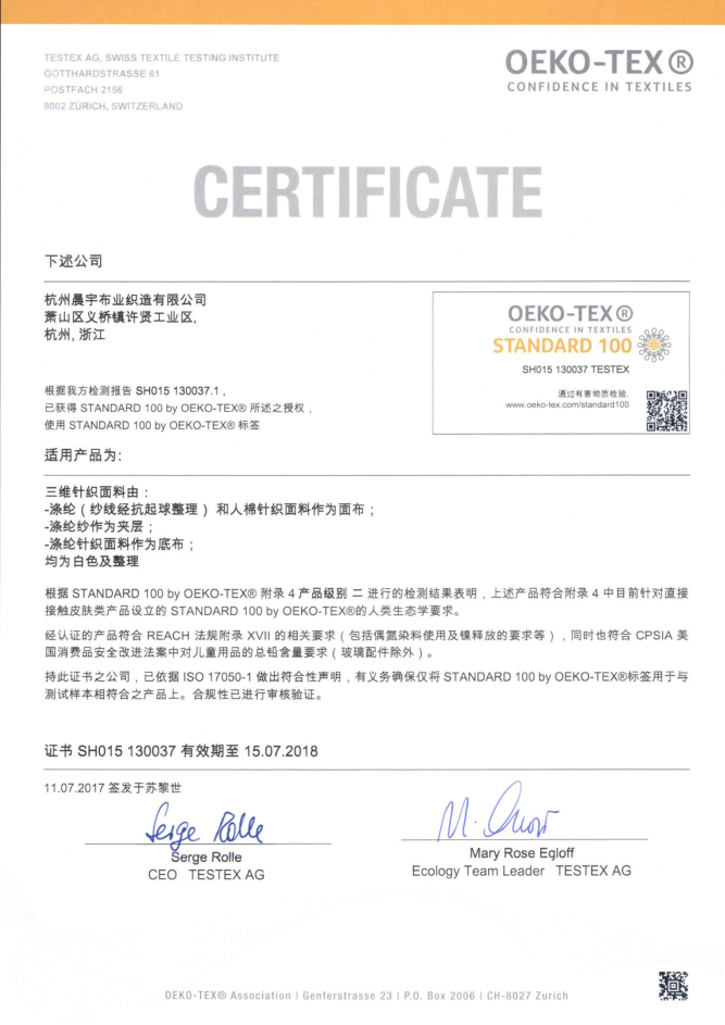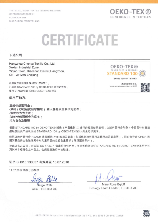 公司非常注重產品質量管理,對生產、整理、檢驗層層把關,嚴格要求各環節工作細致化,被多家國內外著名床墊企業評為A級供應商,并一直通過oeko-tex100產品認證,產品遠銷世界多個國家和地區。